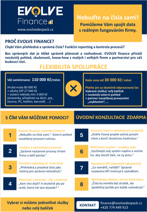 Kontakt: finance@evolvedevpack.cz, +420 774 449 913